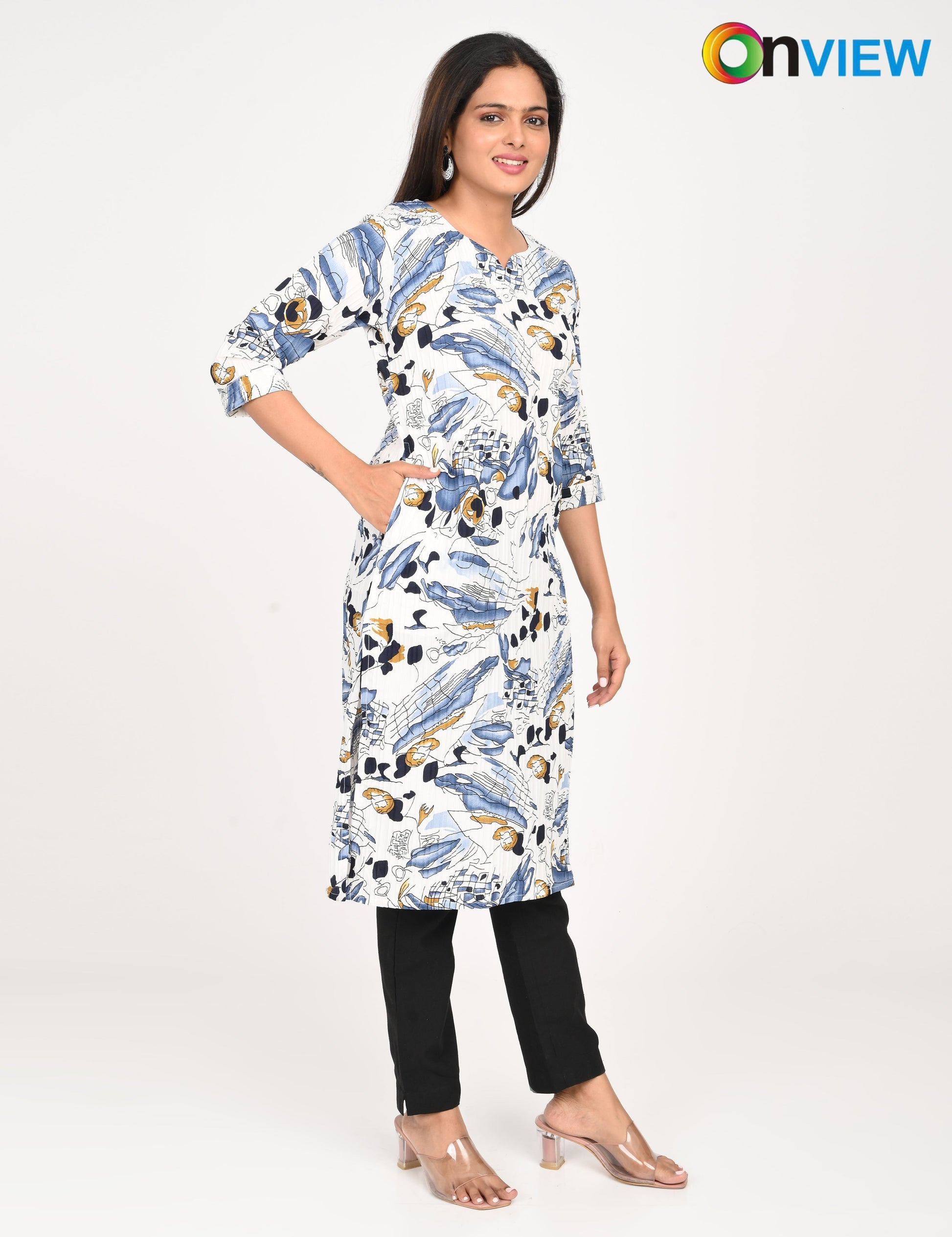 "Designed for modern women, the ONVIEW POPCORN DIGITAL PRINT offers timeless elegance and reliable comfort."