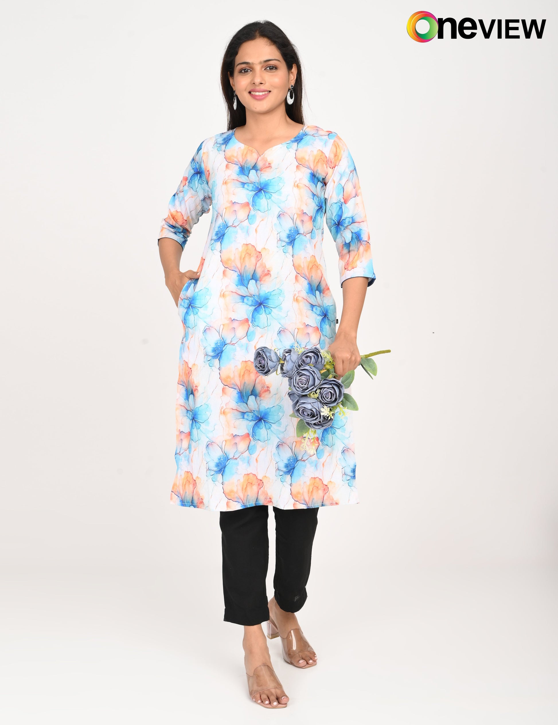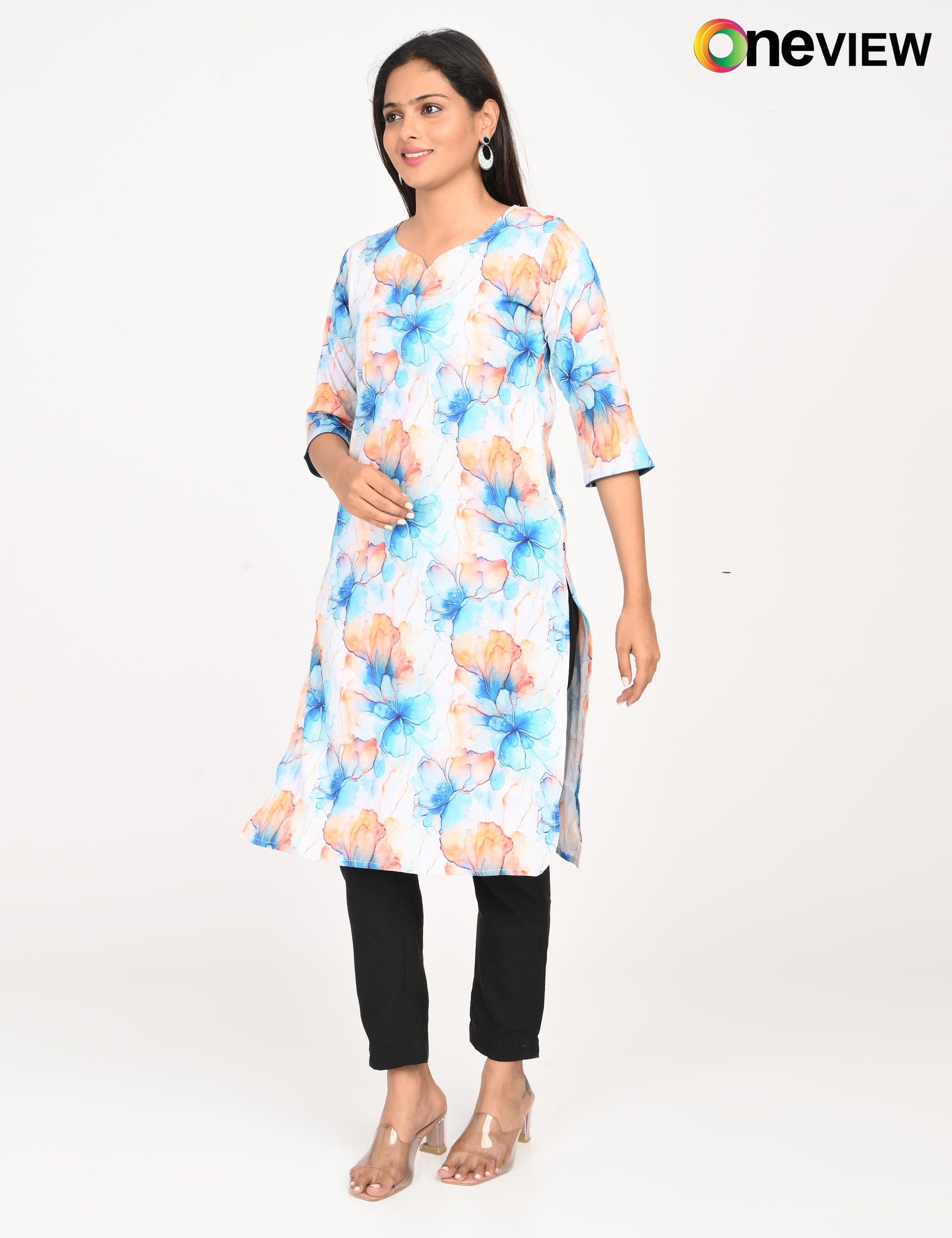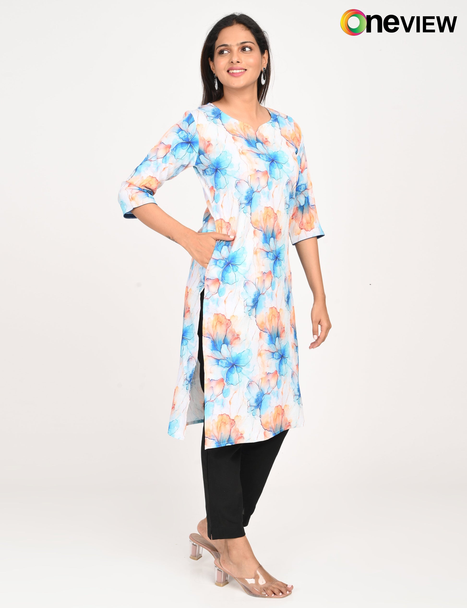 The ONVIEW POPCRON DIGITALPRINT is a sophisticated blend of luxurious fabric and delicate craftsmanship, designed to elevate your style effortlessly. Made from premium-quality silk, this kurti boasts a rich texture and an elegant sheen that exudes opulence, making it a perfect choice for special occasions or everyday elegance.