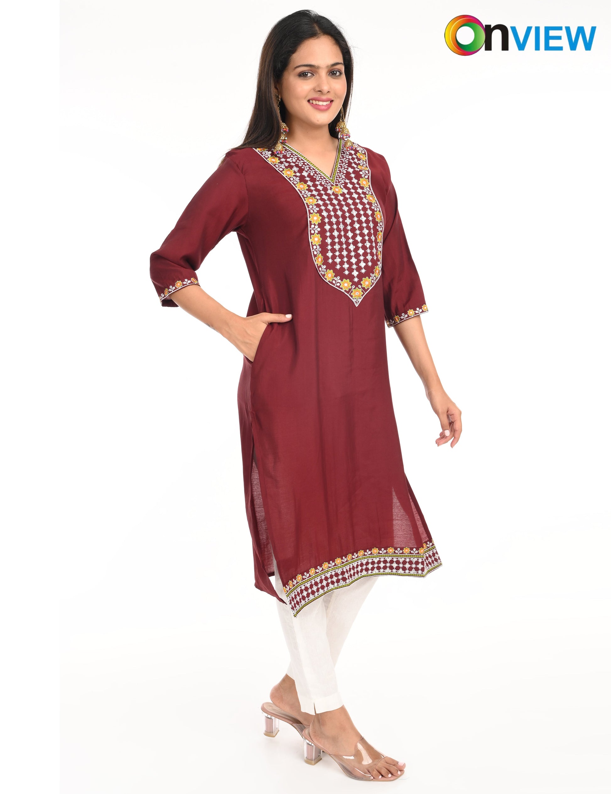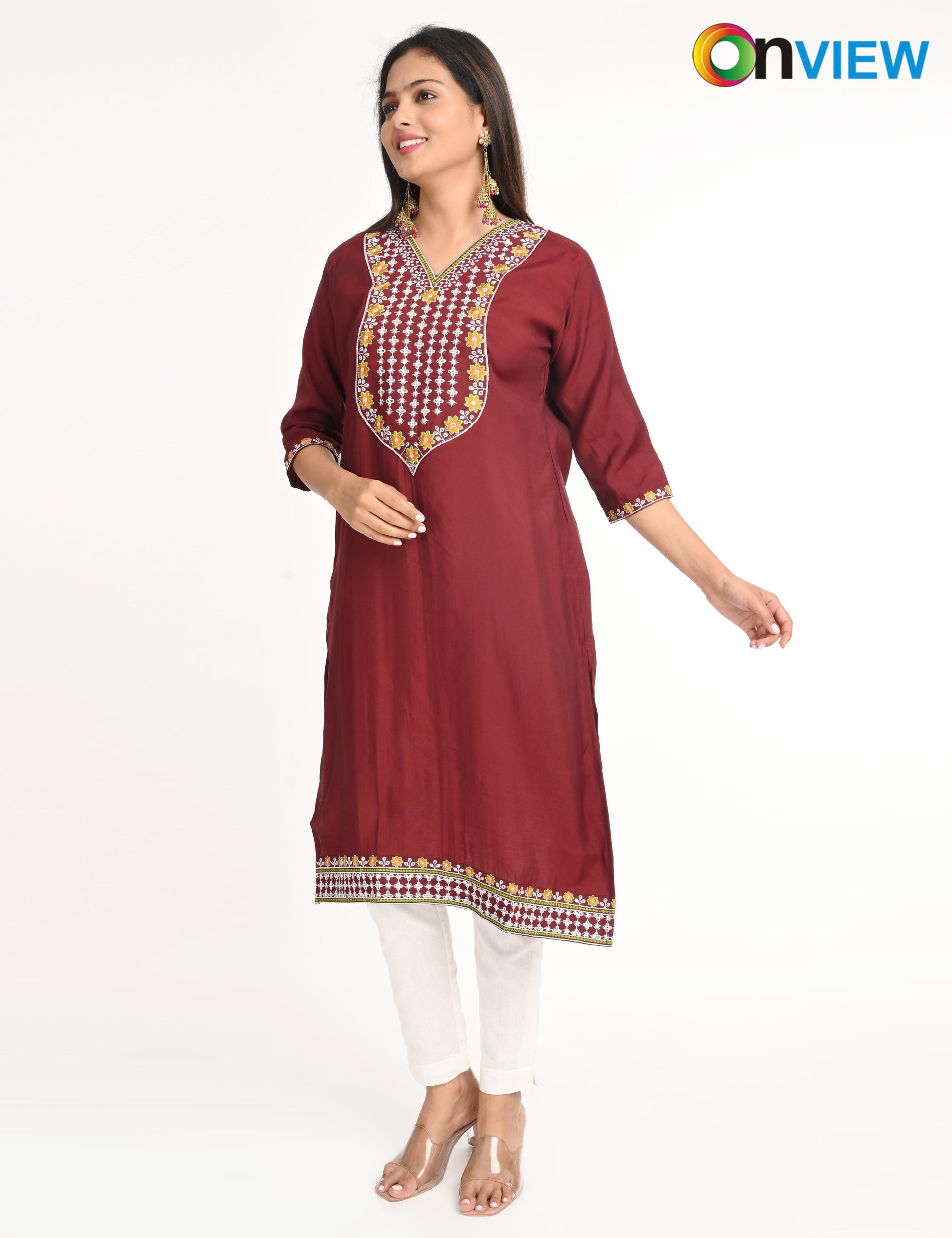 "Designed for modern women, the ONVIEW ROMAN SILK EMBROIDERY WITH BORDER offers timeless elegance and reliable comfort."