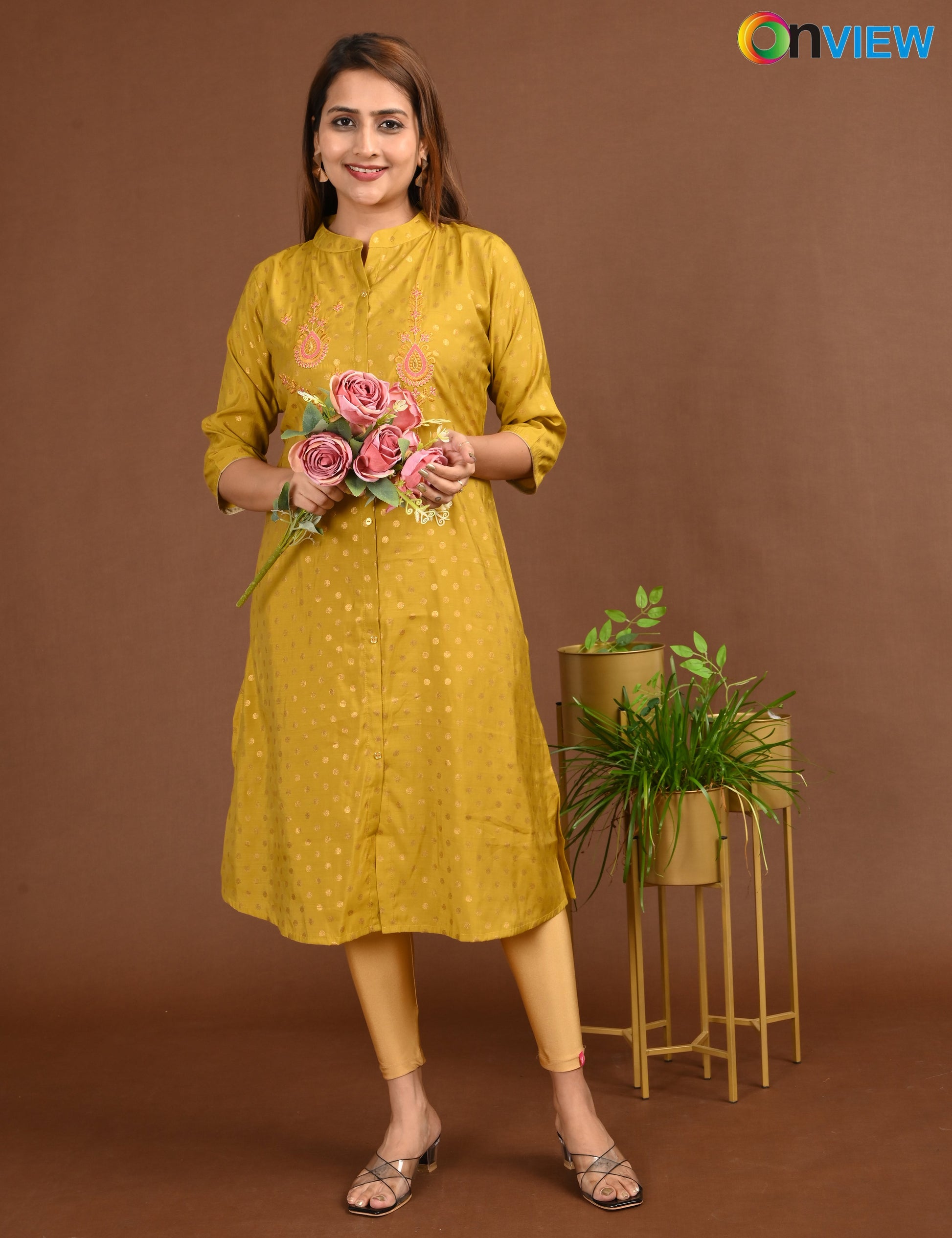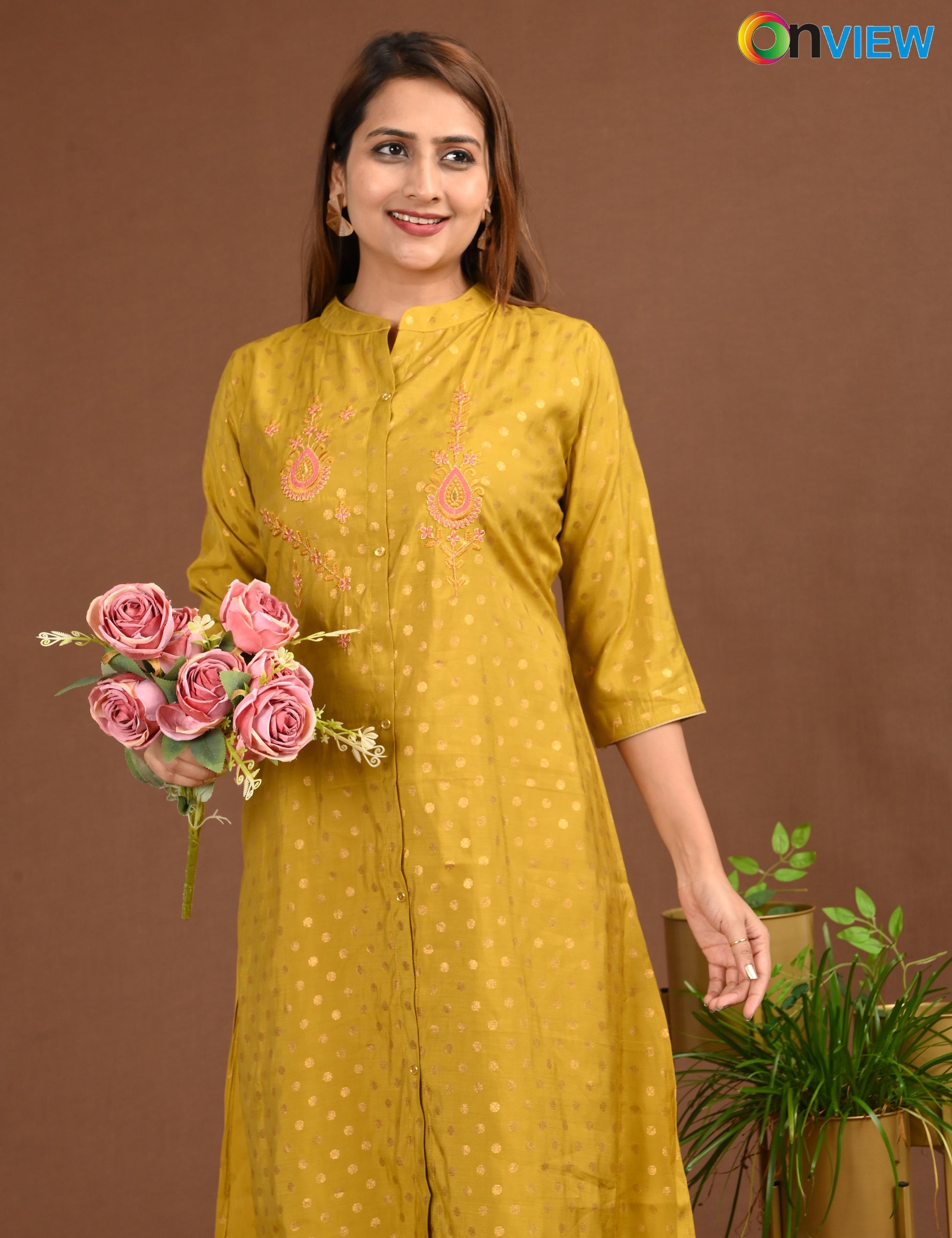 ONVIEW | 1675 | SILK A LINE SIDE OPEN WITH EMBROIDERY