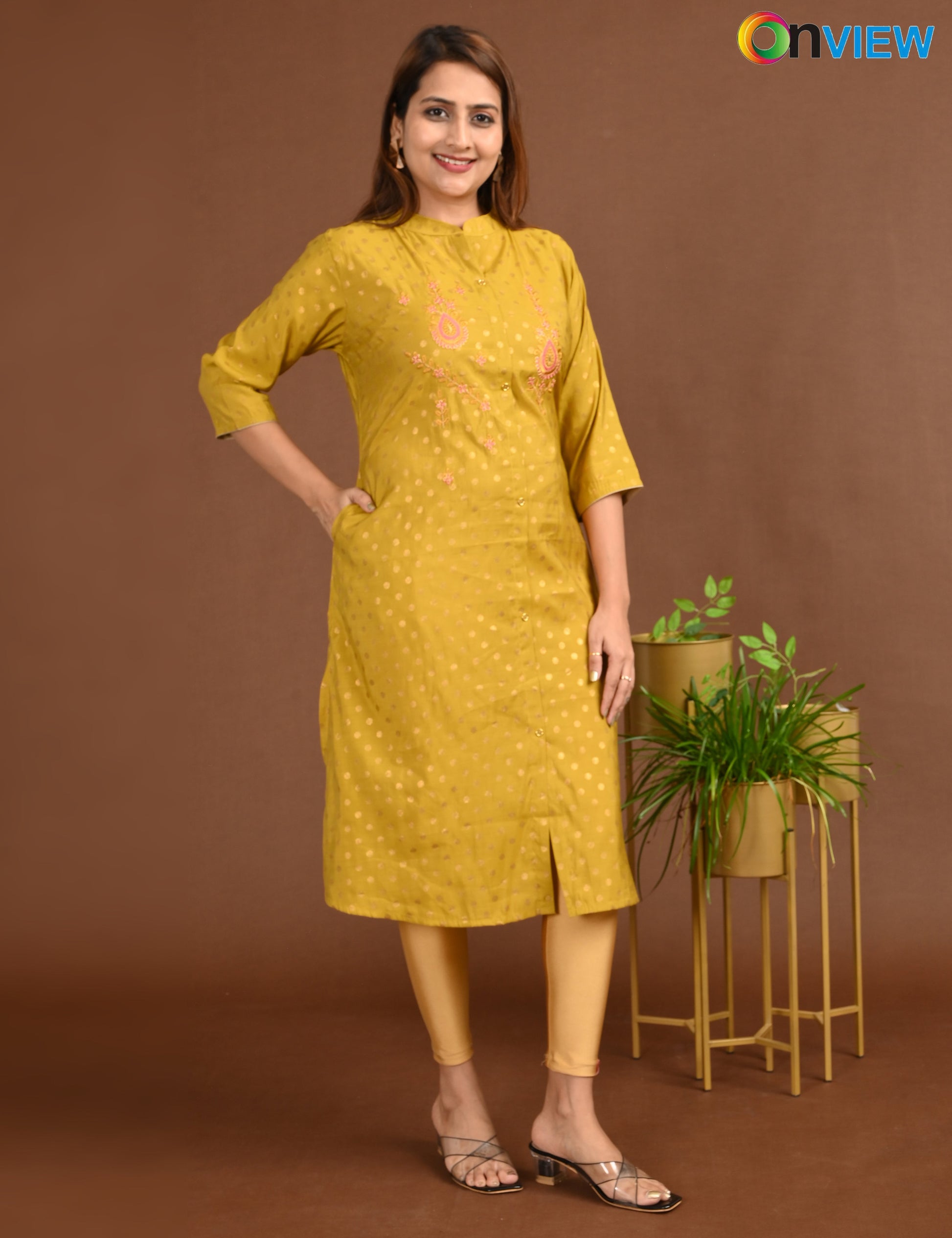 "Designed for modern women, the ONVIEW SILK A LINE SIDE OPEN WITH EMBROIDERY offers timeless elegance and reliable comfort."