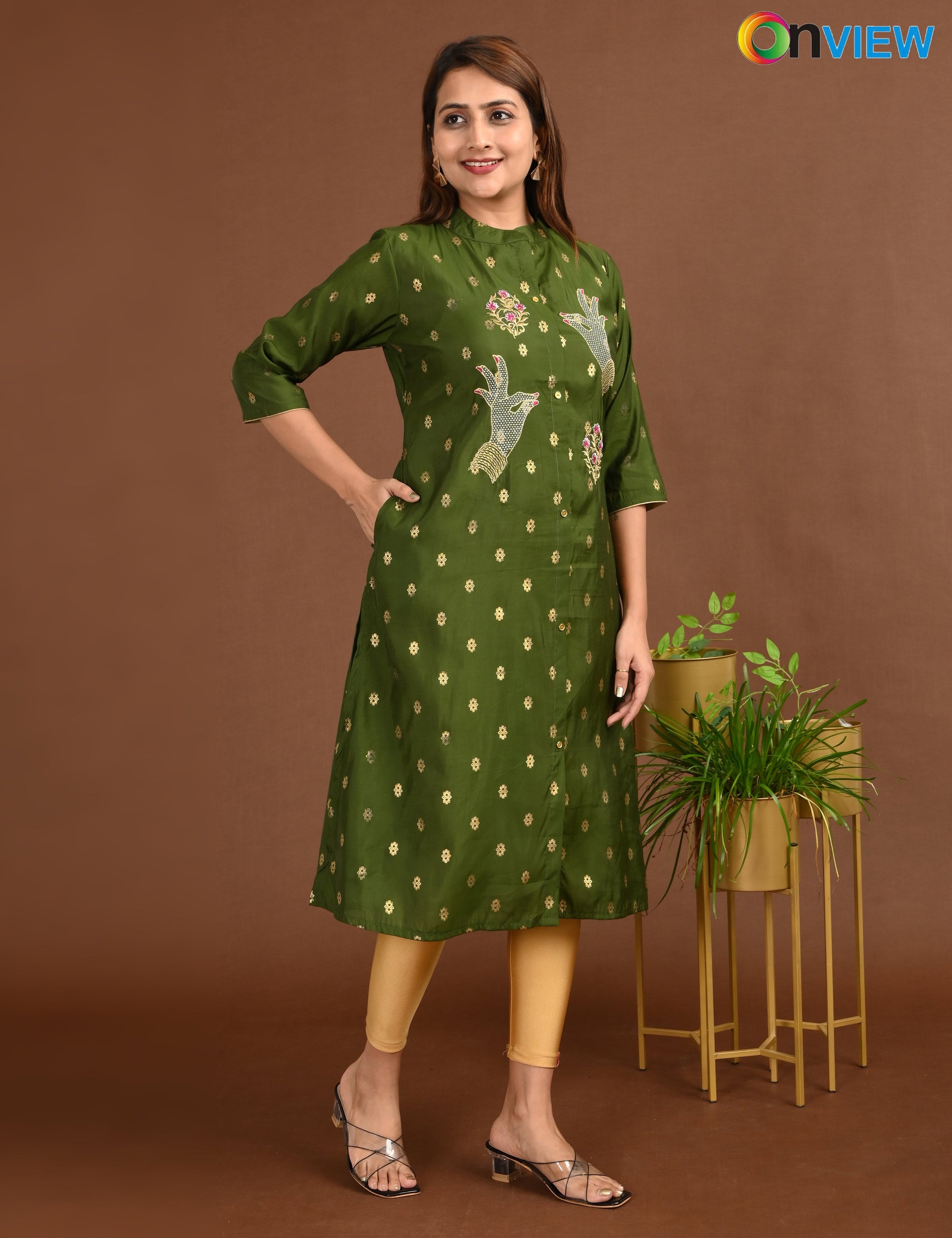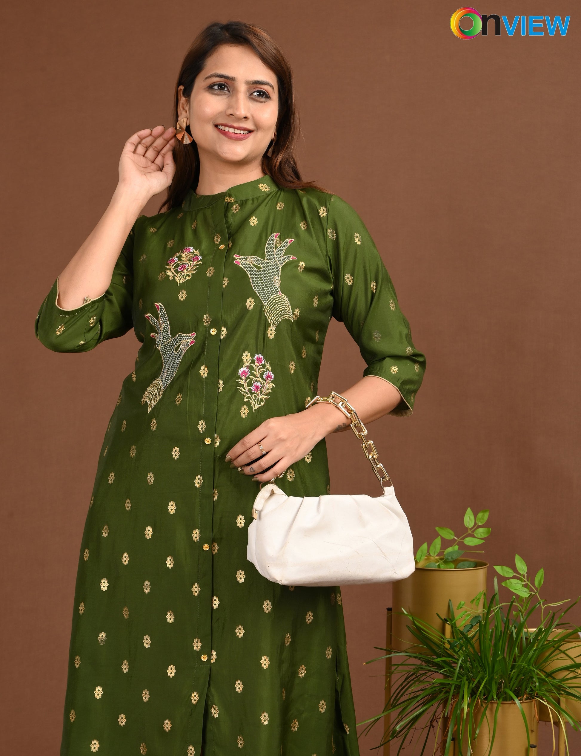 ONVIEW | 1760 | SILK A LINE SIDE OPEN WITH EMBROIDERY