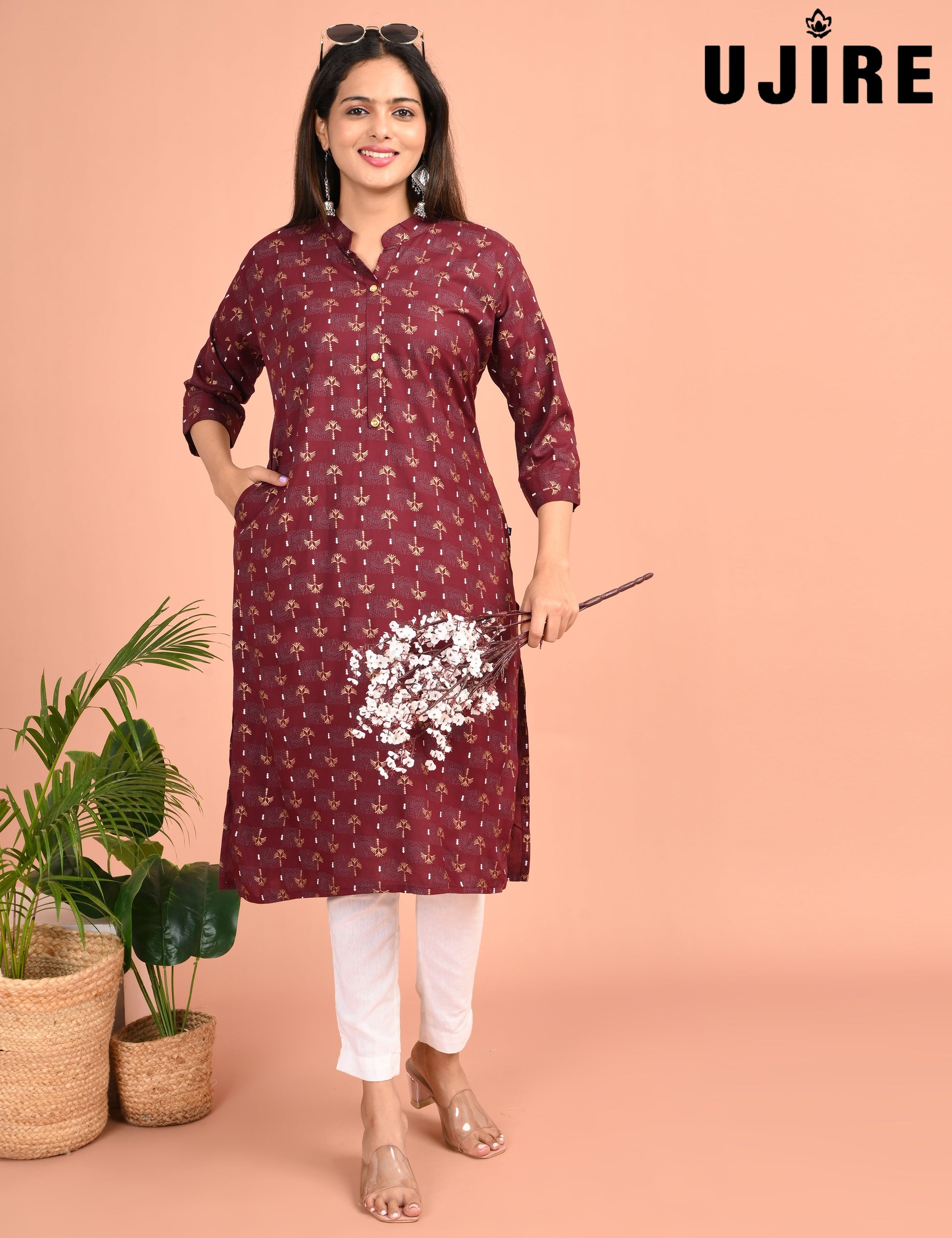 "Designed for modern women, the UJIRE COLLAR NECK WITH POCKET offers timeless elegance and reliable comfort."